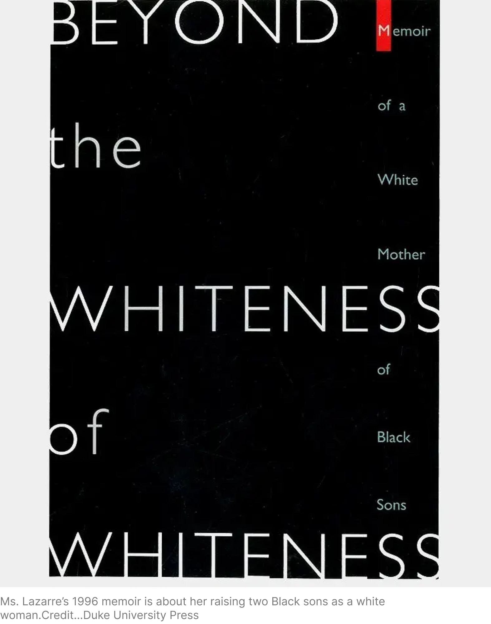 She entered yet another cultural debate in 1996 with “Beyond the Whiteness of Whiteness,” a memoir about raising two Black sons as a white woman.